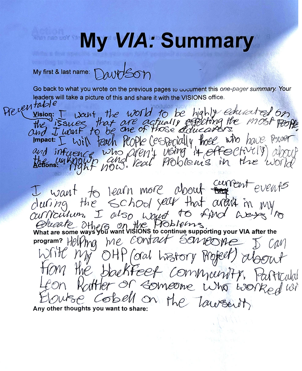 Every VISIONS summer tells a hundred small stories—about teens making a difference on the Blackfeet Reservation in Montana, about high school students addressing housing issues in the Dominican Republic, about new friendships formed on work sites in the Andes of Peru. But this season introduced a new chapter that helped tie all those stories into something lasting, something students could carry home with them long after the bags were unpacked. We call it the VIA.